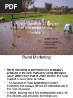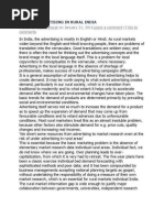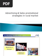 The Haats: Traditionally on certain days of week, both the sellers and buyers meet in the village to buy and sell goods and services. These are the haats that are being held regularly in all rural areas. The sellers arrive in the morning in the haat and remain till late in the evening. Next day they move to another haat. The reason being that in villages the wages are paid on weekly basis and haat is conducted on the day when the villages get their wages. For the marketer, the haat can be an ideal platform for advertising and selling of goods. By participating in haats and melas, the company can not only promote and sell the products but also understand the shared values, beliefs and perceptions of rural customers that influence his buying behaviour. Folk dances: These are well-appreciated form of entertainment available to the village people. The folk dance Kuravan Kurathi is popular in Tamil Nadu. The troupe consists of dancers, drummers and musicians and they move in a well-decorated van from one village to another village singing and dancing. In a day the troupe covers about 8-10 villages. As soon as the van reaches a village, film songs are played to attract the attention of the villages. This is followed by folk dances. Mike announcement is made about the companys products and leaflets are distributed. After the dance programme, queries, if any, about the products are answered by the sales person. Folk dance programme costs about Rs.5000 per day and therefore these programmes are conducted during the peak season in selected villages. Examples: Fertilizer and pesticide companies organize folk dance programmes during peak season in selected markets. Thumps Up has sponsored Lavnis, the folk dance programme of Maharashtra and over 30 programmes have been arranged in selected rural markets.