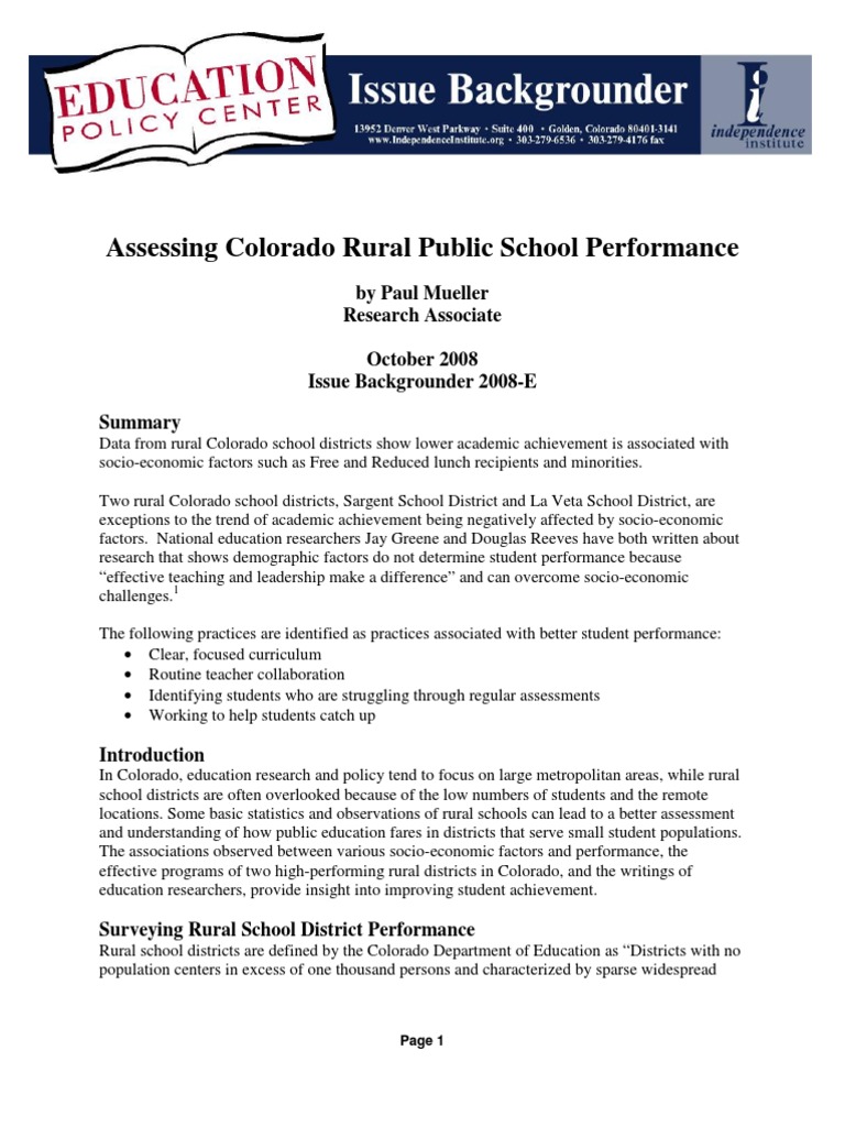 Assessing Colorado Rural Public School Performance