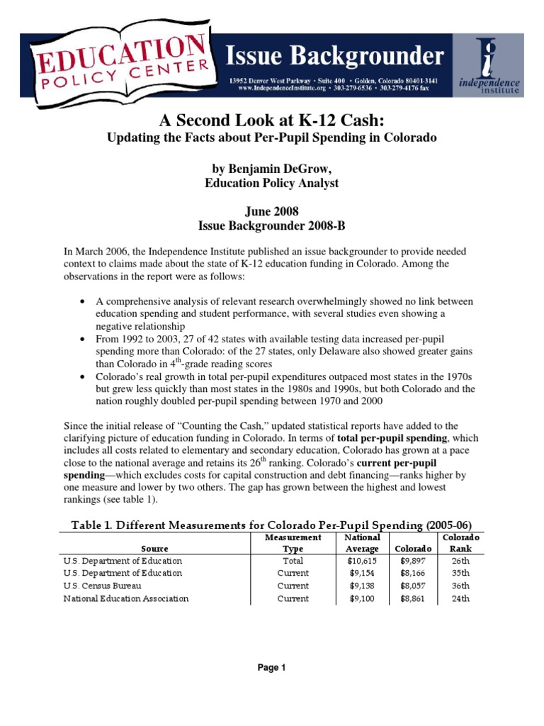 A Second Look at K-12 Cash: Updating The Facts About Per-Pupil Spending in Colorado