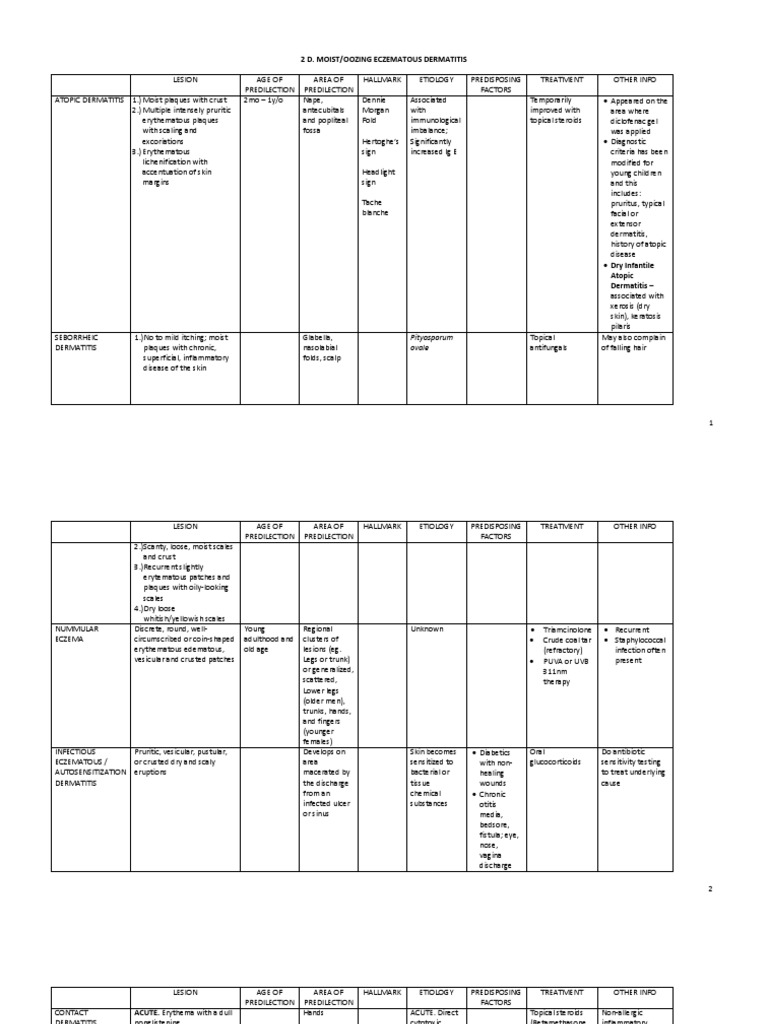 2 D. MOIST/OOZING ECZEMATOUS DERMATITIS LESION ATOPIC DERMATITIS 1.) Moist plaques with crust 2.