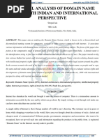 Domain names make the Internet navigable for humans. All servers, computers and other devices linked to the Internet use a unique Internet Protocol (IP) number as their address within the network. Typing [Link] into the address bar of a web browser will lead to the website of a well known search engine from California. Since IP numbers are hard to remember for Internet users, the Domain Name System (DNS) provides shortcuts, assigning more memorizable domain names to the underlying IP numbers. Each domain name consists out of at least two components: Top Level Domains (TLD) structure the overall name space into a limited number of subsets that either have a global scope (gTLD) like COM, NET, ORG or that are country specic (ccTLD) like DE, FR, NL.5 Each TLD is subdivided into Second Level Domains (SLD) that can consist out of letters, numbers and hyphens only. Spaces are not allowed. The combination of a TLD and SLD, separated by a colon, is commonly referred to as an Internet domain name. It cannot exceed 67 characters in total.6 From a lawyers perspective, it is not resolved yet whether a domain name is an intangible asset or just a contractual right (Burshtein, 2005) in practice, the case is clear: domains are treated and traded like assets. The primary market for domain names resembles the land rushes in 19th century America (Lindenthal, 2011). The general rule is: Whoever les a registration for a domain rst receives this domain. No costs but a modest registration fee to the TLD registry are incurred. As a result of this liberal rst-come-rst-serve approach, the number of domain names grew rapidly in the last decade. Figure 1 visualizes the growth in the total number of registered .COM/.NET/.ORG domains since 1998. == insert Figure 1 about here == A domain must be renewed in periodic intervals, again incurring a fee. As long as the renewal fees are taken care of, the domain owner enjoys full ownership benets, including the possibility to rent out the domain or to sell it at the secondary market. Domains that do not get renewed become