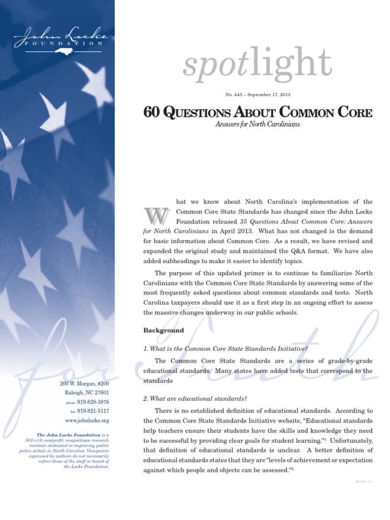Spotlight 443 - 60 Questions About Common Core: Answers For North Carolinians