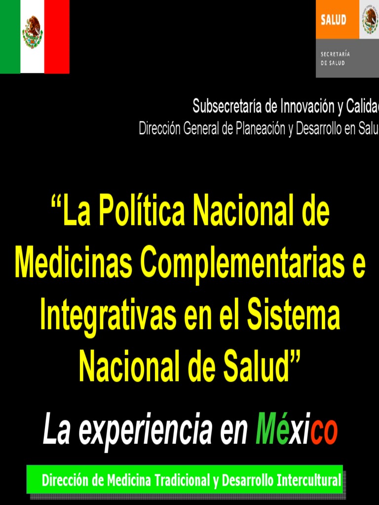 “La Política Nacional de Medicinas Complementarias e Integrativas en el Sistema Nacional de Salud” La experiencia en México