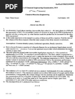 Problem 5.8 (p. 114) A mixed reactor (2 m3) processes an aqueous feed (100 L / min) containing a reagent A (CA0 = 100 mmol / L). This reaction is reversible and is represented by: A R -RA = 0.04 min-1CA - 0.01 min-1 CR