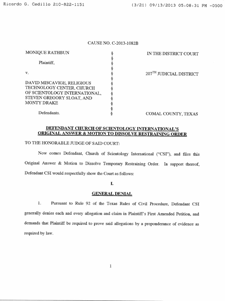 Monique Rathbun Vs Scientology: CSI's Motion To Dissolve The Temporary Restraining Order