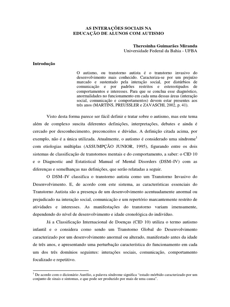 exemplo, não é a única utilizada. Atualmente, o autismo é considerado uma síndrome 1