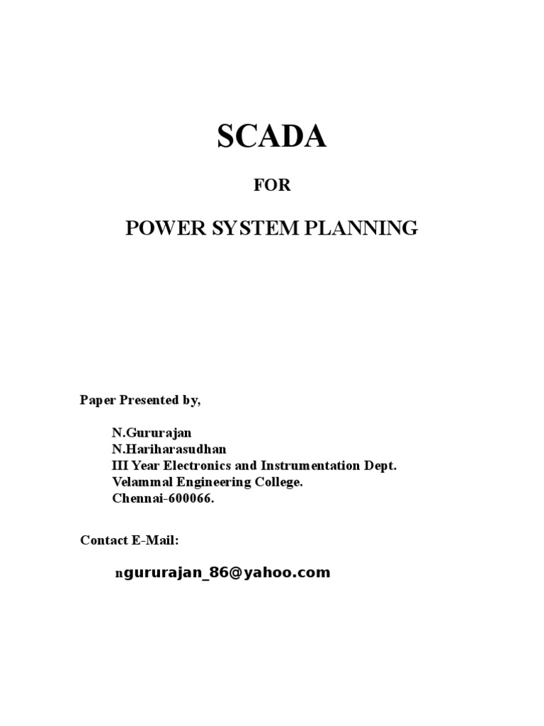 planning. This paper starts with a basic introduction of “what is SCADA?”. The SCADA