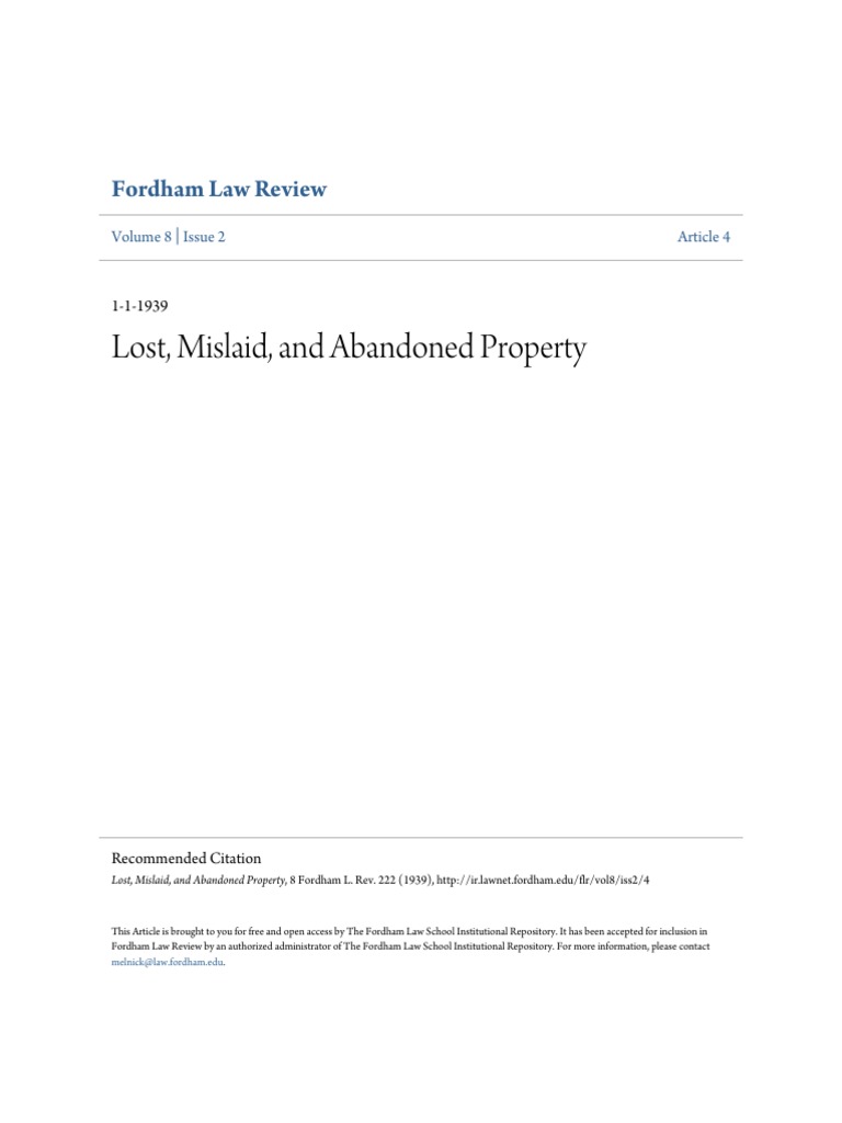 Lost, Mislaid, and Abandoned Property, 8 Fordham L. Rev. 222 (1939), http://ir.lawnet.fordham.edu/flr/vol8/iss2/4