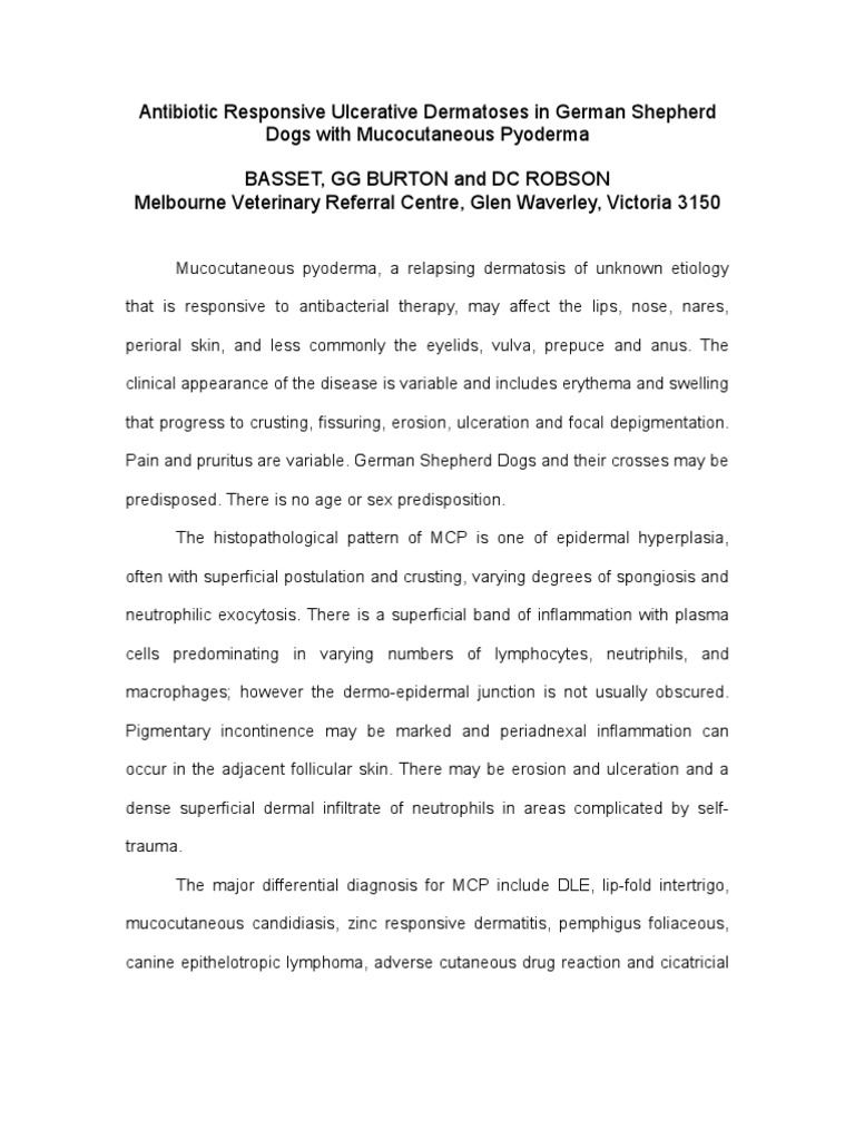 Antibiotic Responsive Ulcerative Dermatoses in German Shepherd
