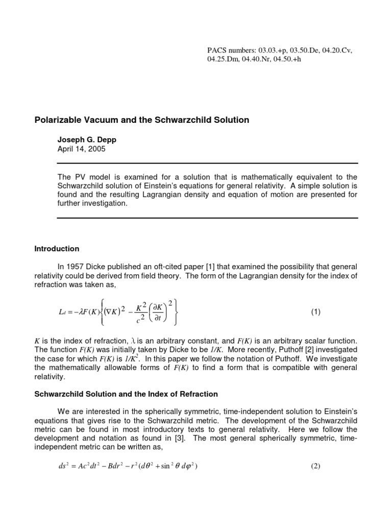 Polarizable Vacuum (PV) and The Schwarzschild Solution