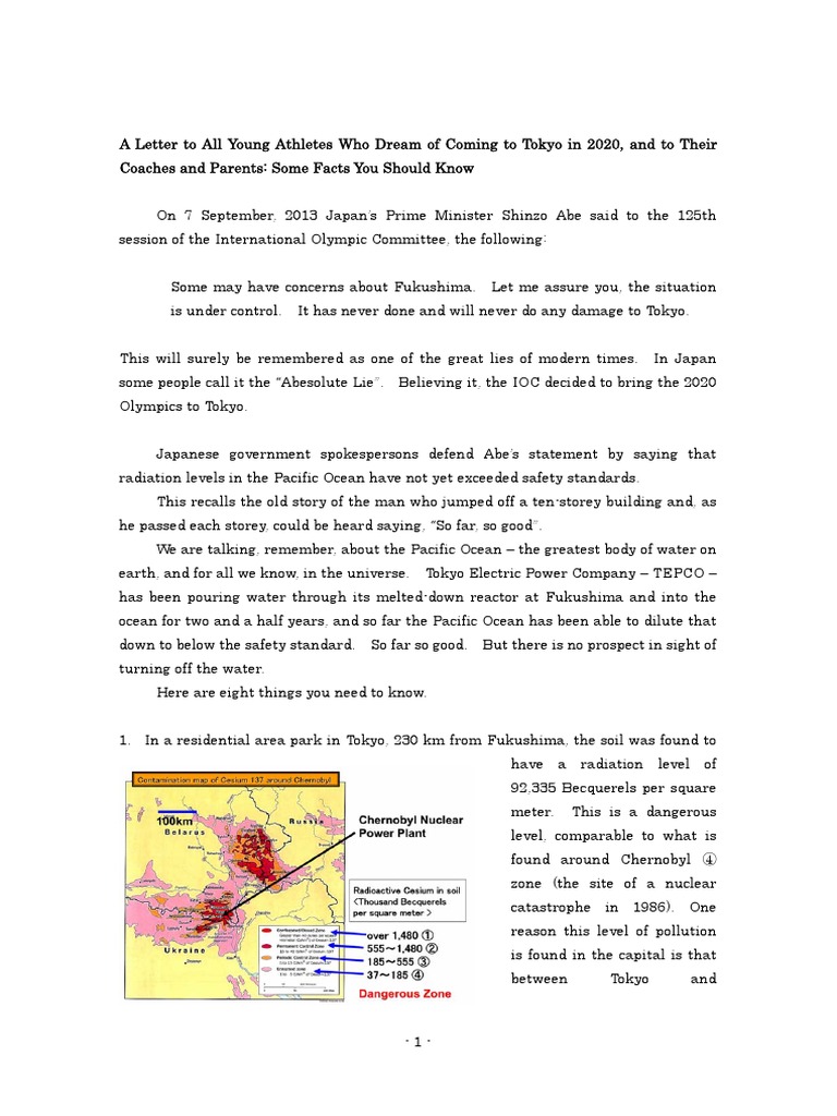 - 2 - Fukushima there are no mountains high enough to block radioactive clouds. In the capital people who understand the danger absolutely avoid eating food produced in eastern Japan. 2.