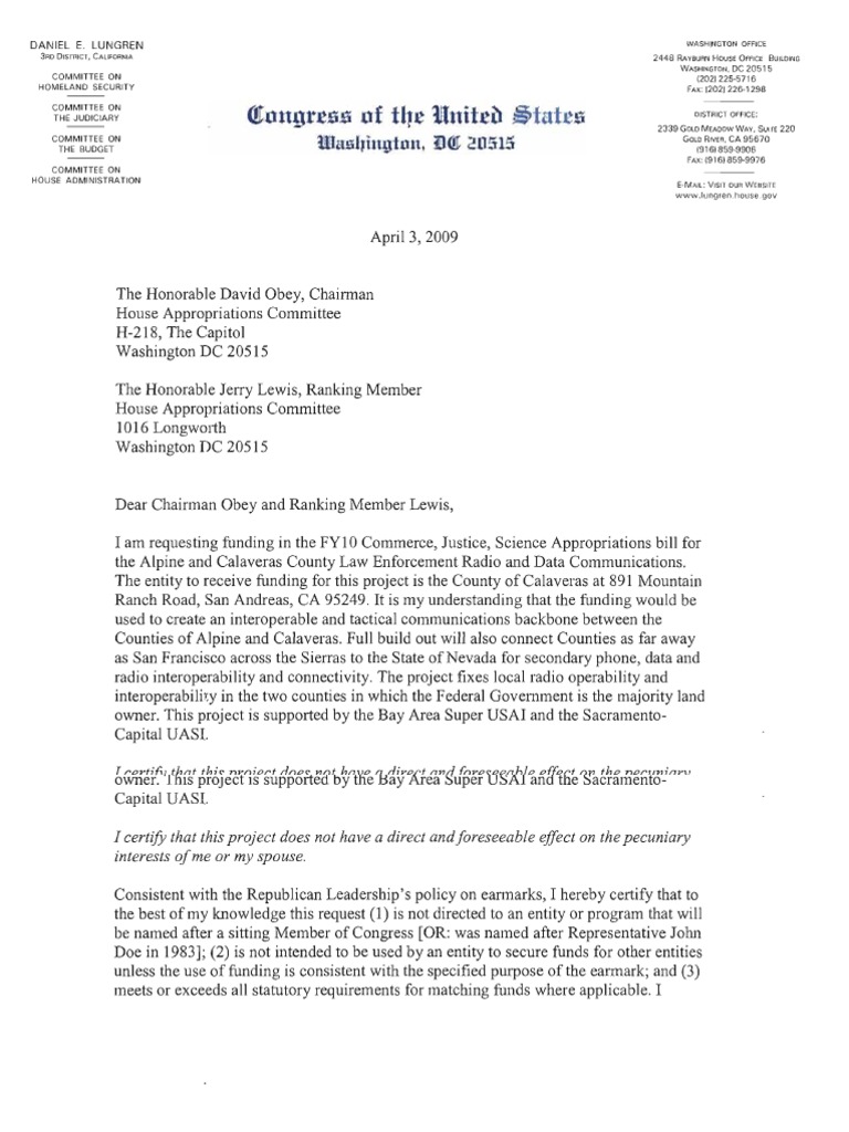 Ranch Road, San Andreas, CA 95249. It is my understanding that the funding would be