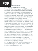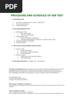 Command Tasks. Each candidate is in turn appointed the commander of the group and given a practical task requiring several men. Individual Obstacles. Simple obstacles which a candidate is required to tackle. INTERVIEWS Interviewer assesses the candidates in an informal and objective manner. The questions would mainly pertain to the candidate's life, academics, awareness and general aspects requiring the candidates' views. TESTING PROGRAMME Arrival Day Reception Checking of Documents Allotment of ID / Chest numbers Photographs Administration Staffs address Completion of Board Questionnaires 1st Day Opening Address by a Deputy President. Intelligence Tests Announcement of screening out result Remaining Psychological Tests (Screened out Candidates will not attend the subsequent tests) 2nd Day Briefing Indoor Tasks Group Discussion Group Planning Outdoor Tasks Progressive Group Task (PGT) Half Group Task (HGT) Interviews 3rd Day Individual Obstacles. Command Task Final Group Task (FGT) Interviews (leftovers) 4th Day Conferences Preparation of all the results