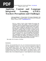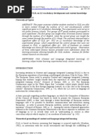 Coyle, D A Developing CLIL: towards a theory of practice Monograph 6 APAC 2006 Coyle, D A A vision for CLIL: past, present and future action handout from CLIL Conference, March 2nd, Anglo-European School, Bishops Stortford, UK 2007 Graddol, D IATEFL CLIL debate, Cardiff, UK 2005 Hutter, J and Rieder-Beinemann, A The effect of CLIL instruction on childrens narrative competence VIEWZ, Vienna Working English Papers 16(3) 2007 (www.univie.ac.at/anglistik/ang_new/online_papers/ views.html) Kelly, K www.factworld.info/clil/cafe/090122/index.htm Prez-Vidal C The integration of content and language in the classroom: a European approach to education (the second time round) CLIL Across Educational Levels Santillana/Richmond 2009 Zarobe, Y CLIL in a bilingual community: similarities and differences with the learning of English as a foreign language VIEWZ, Vienna Working English Papers 16(3) 2007 (www.univie.ac.at/anglistik/ang_new/online_ papers/views.html) Bibliography Ackerl, C. 2007. Lexico-Grammar in the Essays of CLIL and non-CLIL Students: Error Analysis of Written Production in VIEWZ, Vienna Working English Papers, Vol. 16, no. 3, Special Issue, December 2007, http://www.univie.ac.at/anglistik/ang_new/online_papers/views.html. Baetens Beardmore, H. 2009. CLIL Symposium, Iatefl Conference, Cardiff, UK. Clegg J. 2009. Education through a second language: conditions for success in CLIL Conference Proceedings 2008, Norwich: Norwich Institute for Language Education. Coyle, D. A. 2006. Developing CLIL: Towards a theory of practice, Monograph 6, APAC, Barcelona, Spain. 2007. A vision for CLIL: past, present and future action; handout from CLIL Conference, March 2nd, Anglo-European School, Bishops Stortford, UK. Cummins, J. 1979. Cognitive/academic language proficiency, linguistic interdependence, the optimum age question and some other matters in Working Papers on Bilingualism, No. 19, 121-129. Gradoll, D., 2005. IATEFL CLIL debate, Cardiff, UK. Hutter, J. & Rieder-Beinemann, A. 2007. The Effect of CLIL Instruction on Childrens Narrative Competence in VIEWZ, Vienna Working English Papers, Vol. 16, no. 3, Special Issue, December 2007, http://www.univie.ac.at/anglistik/ang_new/online_papers/views.html.