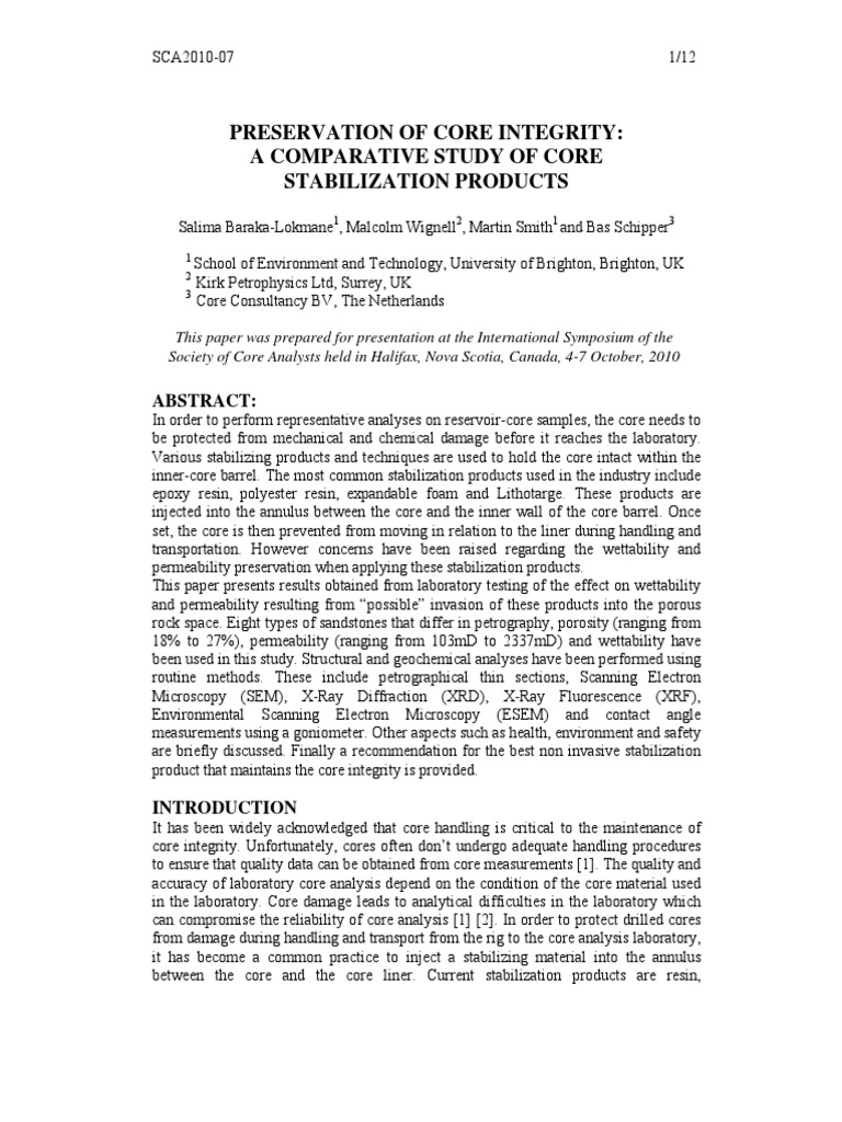 PRESERVATION OF CORE INTEGRITY: A COMPARATIVE STUDY OF CORE STABILIZATION PRODUCTS