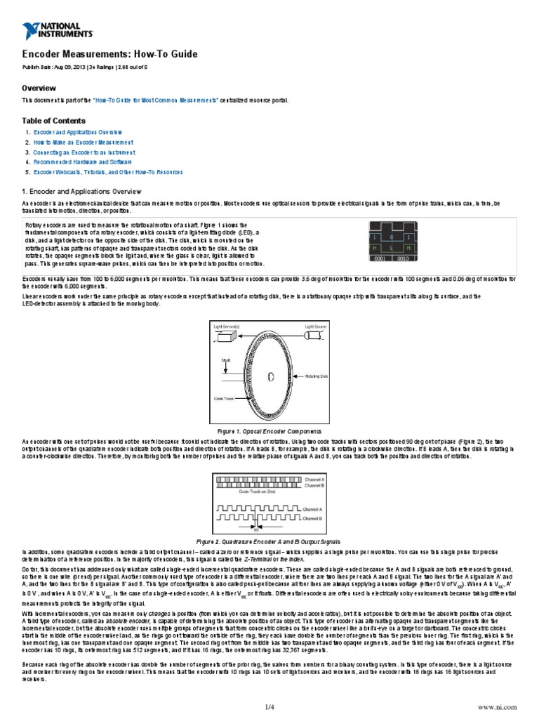 1. Encoder and Applications Overview 2. How to Make an Encoder Measurement 3. Connecting an Encoder to an Instrument 4. Recommended Hardware and Software 5. Encoder Webcasts, Tutorials, and Other How-To Resources