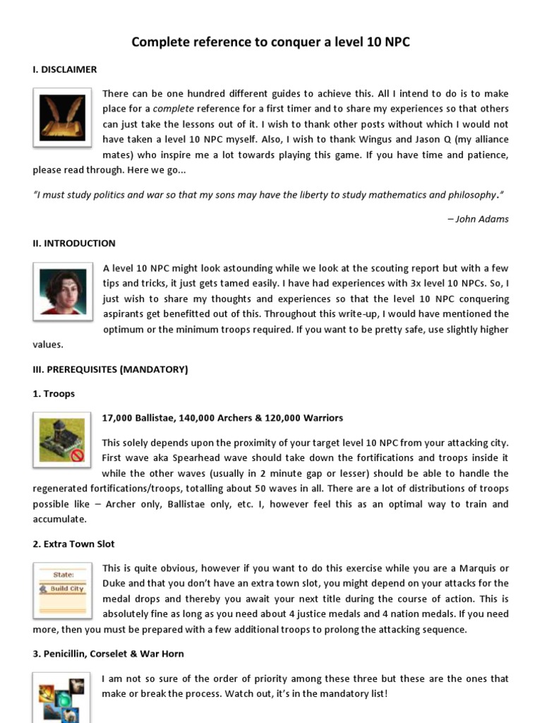 just wish to share my thoughts and experiences so that the level 10 NPC conquering