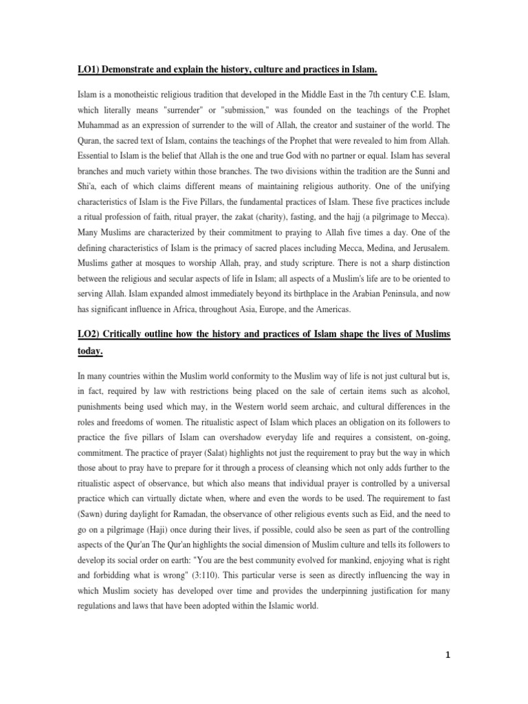 LO2) Critically outline how the history and practices of Islam shape the lives of Muslims today.