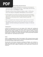 Alejandro Karangalan - a thirteen-year-old boy (first narrator) Isabelle Karangalan - Alejandro's older sister (second narrator) Domingo Matapang - a guerilla commander (third narrator) Felician o- a "collaborator" Yukino Yoshi - a Japanese Filipino citizen, mother Aling Ana Mang Pedro Tay Fredrico - an old Spaniard