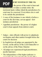 THE COURT SYSTEM IN THE UK Jurisdiction = the power of the court to hear and decide a case or make a certain