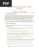 Criminal courts of first instance 2 criminal courts: the Magistrates' Court and the Crown Court the senior of the two is the Crown Court the courts are arranged in a local structure to enable the system to work effectively the most important Crown Court = the most famous = the Old Bailey, in London the Magistrates' Court does have some civil functions in addition to its criminal duties Civil Courts 2 main civil courts of first instance: the County Court and the High Court the County Courts are arranged in a local structure to facilitate accessibility the High Court of Justice is split into 3 divisions: the Queen's Bench Division - deals mainly with claims for damages and equitable remedies as a result of breaches of contract and torts the Chancery Division - deals in matters of partnership and company law, revenue matters and important property issues the Family Division - deals in matrimonial disputes and children cases (such as custody issues)