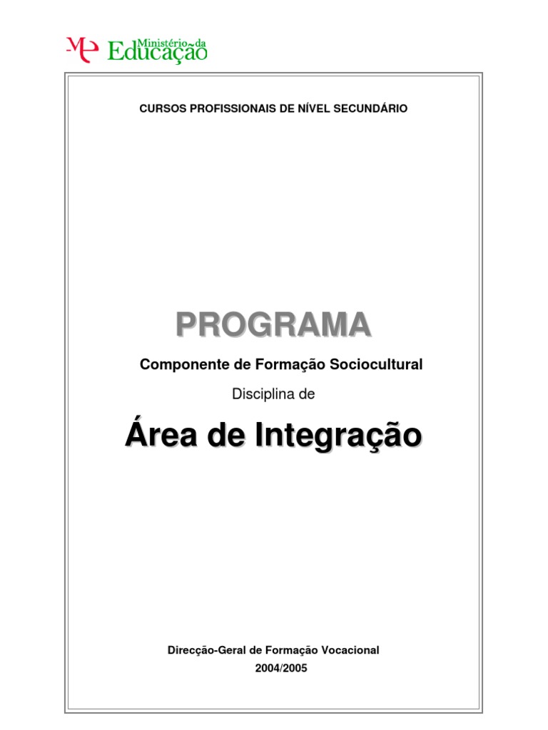 Programa de ÁREA DE INTEGRAÇÃO Cursos Profissionais