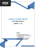 comparing the two, ask yourself the following questions: Have I accurately addressed the author's ideas in a new way that is unique to my writing style and scholarly voice? Have I tried to replicate the author's idea or have I simply changed words around in his/her original sentence(s)? 4. Next, look for any borrowed terms or particular phrases you have taken from the original passage. Enclose these terms and phrases in quotation marks to indicate to your readers that these words were taken directly from the original text. 5. Last, include a citation, which should contain the author's name, the year, and the page or paragraph number (if available), directly following your paraphrase. Examples of Paraphrasing Here is the original source an author might use in a paper: Differentiation as an instructional approach promotes a balance between a student's style and a student's ability. Differentiated instruction provides the student with options for processing and internalizing the content, and for constructing new learning in order to progress academically. Here is an example of bad paraphrasing of the source. Even though the student is citing correctly, underlined words are simply synonyms of words used in the original source. You can also see how the sentence structure is the same for both the original source and this paraphrase. Differentiation is a way to encourage equality between the approach and talent of the student (Thompson, 2009). This type of instruction gives students different ways to deal with and grasp information, and for establishing new learning to move on in education (Thompson, 2009). Here is an example of a better way to paraphrase the source. In this example, the author has taken the essential ideas and information from the original source, but has worded it in her own way, using unique word choice and sentence structure. The author has condensed Thompson's (2009) information, including what is relevant to her paper, but leaving out extra details that she does not needed. Teachers use differentiated instruction to help students learn, allowing the teacher to cater lessons to the way each student learns and each student's skill (Thompson, 2009).