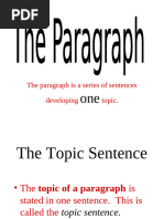The best way to understand the role of the topic sentence in paragraph development is to imagine that any given paragraph is a miniature essay that has its own thesis, support, and conclusion. The parts of a paragraph easily correspond to the parts of an essay:
