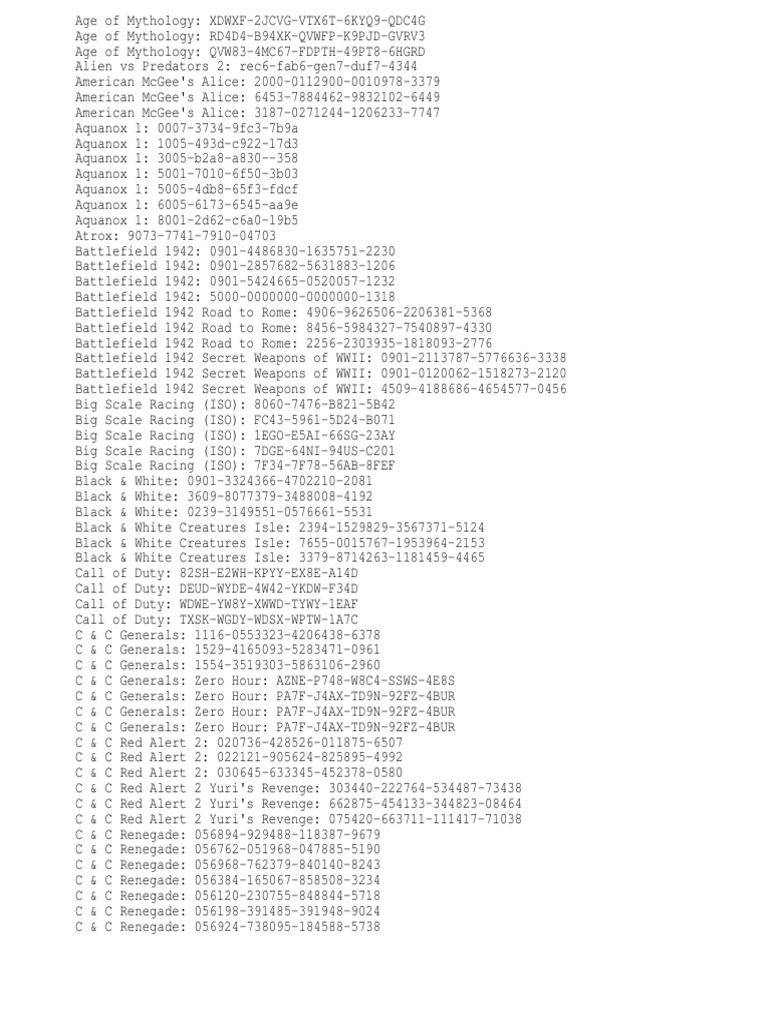 Age of Mythology: QVW83-4MC67-FDPTH-49PT8-6HGRD