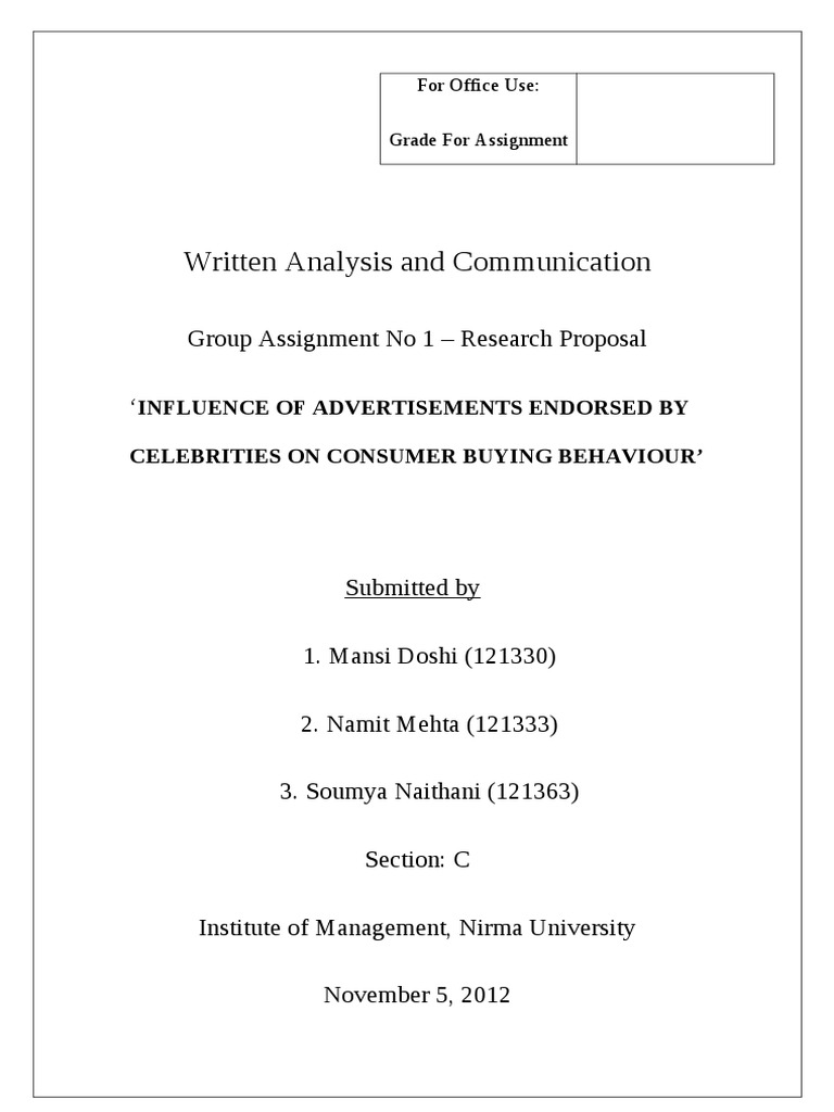 Group Assignment No 1 Research Proposal INFLUENCE OF ADVERTISEMENTS ENDORSED BY