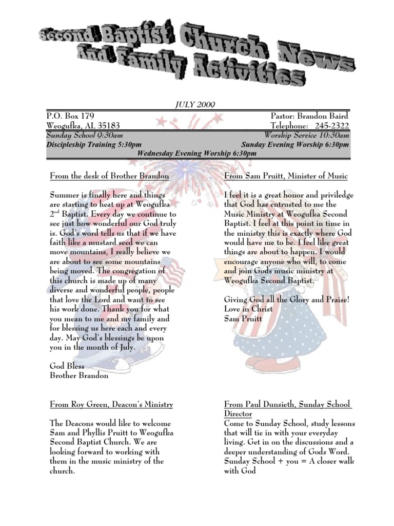 From Roy Green, Deacon’s Ministry From Paul Dunsieth, Sunday School