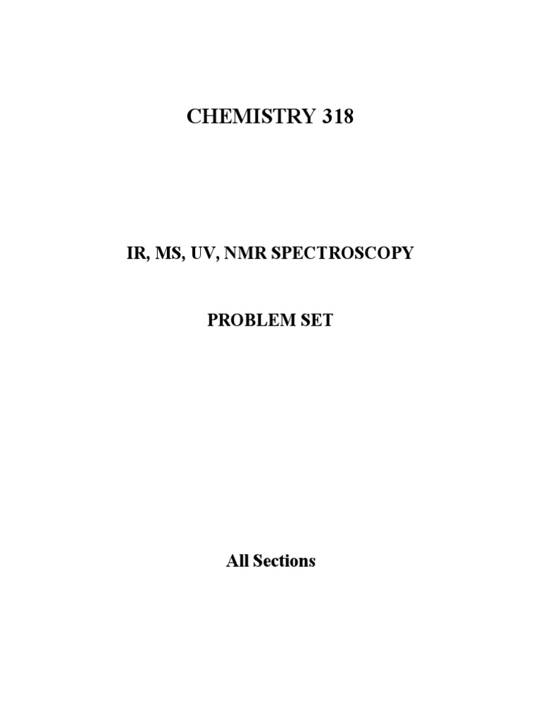 CHEMISTRY 318 IR, MS, UV, NMR SPECTROSCOPY PROBLEM SET