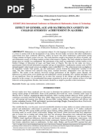 Beilock et al. (2010) measure teacher math anxiety through a questionnaire that was given to teachers at the beginning and the end of the academic year. Specifically, math anxiety was assessed using the short Mathematics Anxiety Rating Scale where teachers responded to 25 questions about how anxious different situations would make them feel (e.g., reading a cash register receipt after you buy something, studying for a math test, etc.). Responses were recorded on a Likert scale from 1 (low anxiety) to 5 (high anxiety). Bielock et al. 2010 construct an aggregate teacher math anxiety measure based on the average of the teacher responses from all 25 questions. 24 Math anxiety among elementary school teachers, of which females constitute about 90 percent, is a commonplace phenomenon (Bursal and Pagnozas [2006], Gresham [2007]). Earlier studies also find a negative effect of math anxiety on teaching performance in math classes (Bush [1989], Tobias [1998]).
