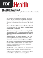 Buzz about the movie "300" increases in volume as its release date approaches. Because we were responsible for the fitness and appearance of the barely-clothed protagonists we are fielding calls regarding the training undertaken by cast and stunt crew. Since it was a Hollywood gig assumptions are made about the preparation, with a 50-50 split between accuracy and utter madness. The following explanation should help to rectify the more erroneous ideas about what actually happened. There's a decent introduction to the project here: http://www.moviesonline.ca /movienews_11337.html (http://www.moviesonline.ca/movienews_11337.html) Part of the Warner Bros press kit reads, "To support fight preparation the training emphasized athleticism by combining compound movements, lifting, and throwing. Primitive tools - medicine balls, Kettlebells, rings - were used instead of machines. Each