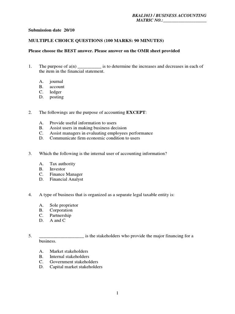 BKAL1013 / BUSINESS ACCOUNTING MATRIC NO.:____________________