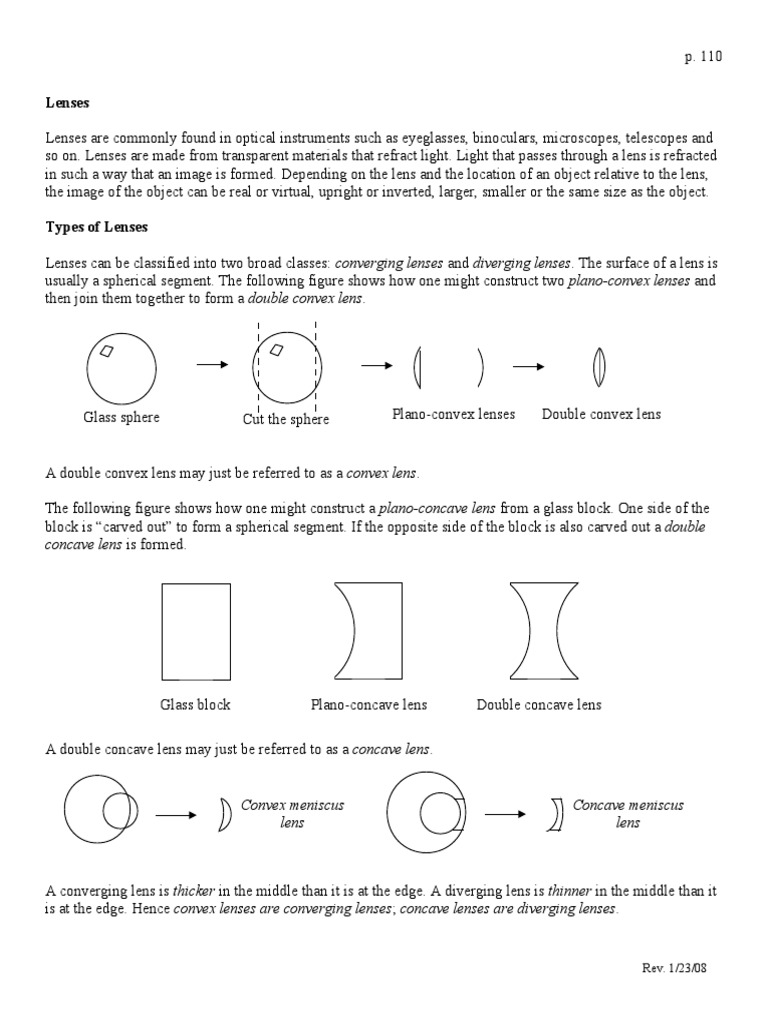 p. 110 Lenses Lenses are commonly found in optical instruments such as eyeglasses, binoculars, microscopes, telescopes and so on.