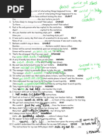 1. Are you interested _________ poetry? 2. I wont go out! Im afraid ________ spiders! 3. My handwriting is different _________ my mothers. 4. Mrs. Clark is very fond _____ classical music. 5. The 7.30 train was crowded ______ people! 6. She is very good _______ foreign languages. 7. Sometimes Julia is a bit jealous __ her Mum. 8. I need a change in my life! Im totally bored ______ my life! 9. Sara is excited _____ going to Paris. 10. Michael is brilliant _____ playing chess. 11. Mum was angry ______ me. 12. Parents are responsible ____ their children. 13. My dress is similar ____ yours. 14. My personality is different ______ yours. 15. Anne was angry ____ not going on holiday. 16. Mary is fed up _____ her job. 17. Thomas is keen _____ playing chess with his father. 18. I am fully aware _____ my duties. 19. Men are hopeless _____ ironing! 20. Sam is a little short _____ money. 21. Your quick response has prevented me ____ falling. 22. That man over there reminds me ____ somebody I know. 23. Alice got married _____ Henry. 24. Sara is used ____ waking up early. 25. There has been a worldwide increase ____ the unemployment rate. 26. The babys reaction _____ the vaccine was extremely alarming. 27. There are many advantages _____ living in the countryside. 28. My opinion differs ______ yours. 29. There are some differences _____ British English and American English. 30. Were you invited ____ the party? 31. Theres a slight connection ____ her illness and the food she has been eating. 32. Its so typical ____ him to offer roses! 33. You dont need to help me! Im totally capable _____ doing the job myself! 34. Dont shout _____ me! It was not my fault! 35. You dont need to shout ___ me! I can hear quite well. 36. Sally complained ____ her mother _____ Peters behaviour. 37. Im looking _____ my purse. I dont know where I left it. 38. Im looking _____ my two-year-old cousin. 39. Susie is applying ___ her new job this week. 40. Ive just read a book __ teenage depression. 41. Take good care ____ yourself! 42. Would you please translate this ____ Portuguese? 43. Kevin has succeeded ____ his job.