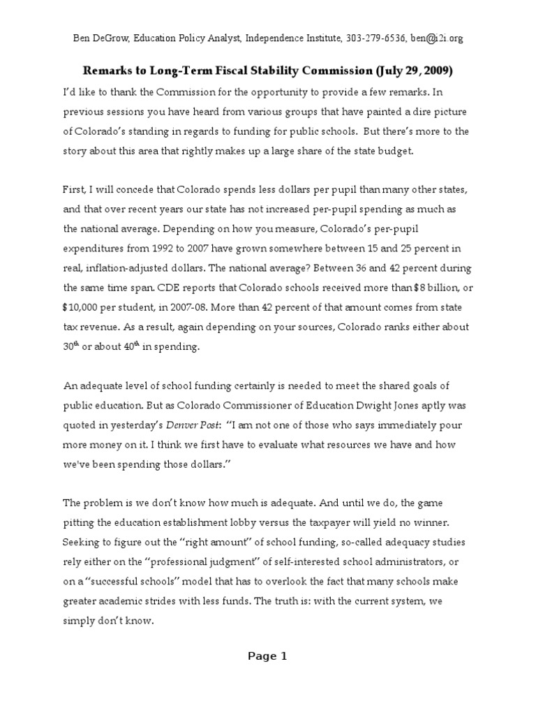 Ben DeGrow, Education Policy Analyst, Independence Institute, 303-279-6536, ben@i2i.org