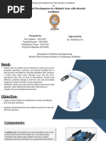 1. List of Tables 2. List of Figures 3. List of symbols 4. Chapter 1: Introduction 5. Chapter 2: Survey of different methods used for actuation of robotic arms 6. Chapter 3: Description and constructional features 7. Chapter 4: Derivation of an expression for the slacking of rope 8. Chapter 5: Design of the links of the arm. 9. Chapter 6: Deflection and natural frequency of the arm. 10. Chapter 7: Future scope 11. References