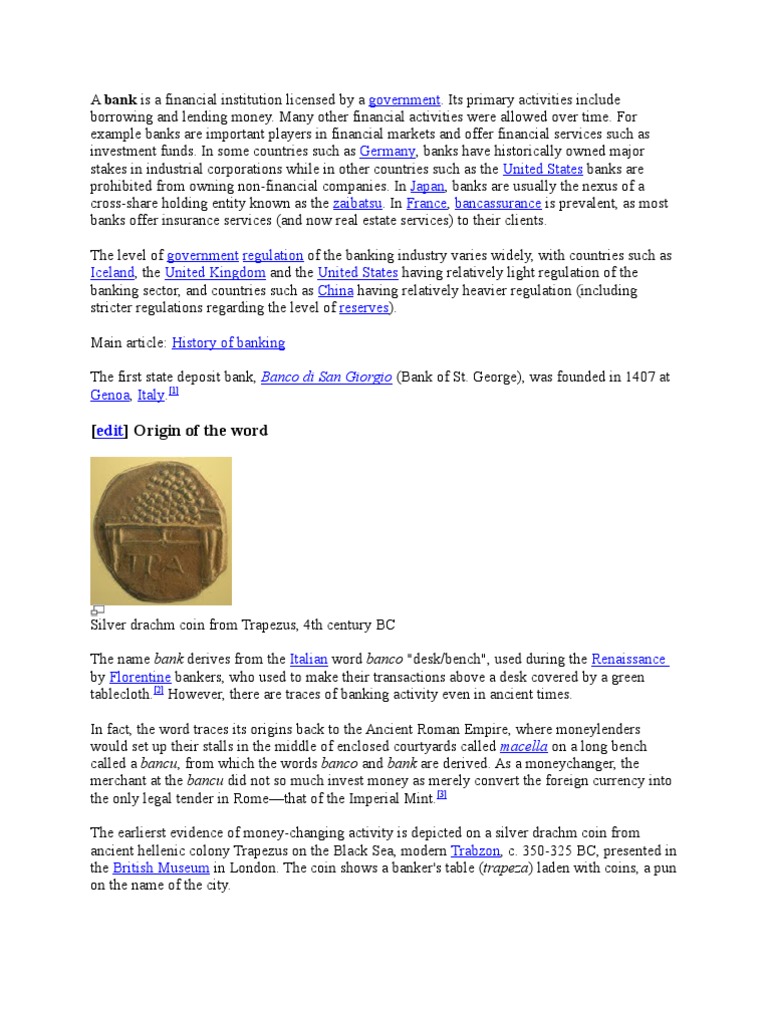 Main article: History of banking