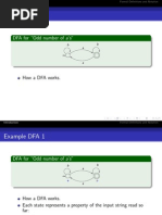 Example-10: Some examples on closure *: ( a b* ) All words of the form one a followed by some numbers of bs (may be no bs at all) { a ab abb abbb ..} (ab)* or ab or abab or ababab . (ab*a) { aa aba abba abbbba } a* b* { a b aa ab bb aaa aab ..} If = {x}; L ={x, xx, xxx, xxxx, ..}; means L = {xn | n = 1, 2, 3, ..}. * = {, x, xx, xxx, .}; means L = {xn | n = 0, 1, 2, 3, ..}. Alteration: The notation | denotes either or alteration. (also represented by + for choice) Example-11: M|N is interpreted as M or N. (also represented as (M + N). ab | cde is interpreted as (ab) | (cde); may be represented as: ab or cde a | bc* is interpreted as (a) |(b (c)* ) (a | b)(a | b) denotes { aa ab ba bb} or aa | ab | ba | bb; i.e. set of all strings of as and bs of length(2). (a | b)* denotes the set of all strings containing zero or more instances of an a or b. ab*(c | de)* denotes a single a followed by zero or more bs followed by zero or more of either c or de, i.e. a ab ac abb abc acc ade abbb abbc abcc abde accc Example-12: Some more solved examples: The language L in which the first letter of each word is either a or b is given as: L=language(a + b) The language of all words that have at least two as can be written as: b*ab*a(a+b)*. The set of all possible strings of letters from the alphabet = {a b} including the null string is represented as: (a+b)*. The language contains all the strings of as and bs in which all the as (if any) come before all the bs is language(a* b*) = { a b aa ab bb aaa abb } 6 of 10