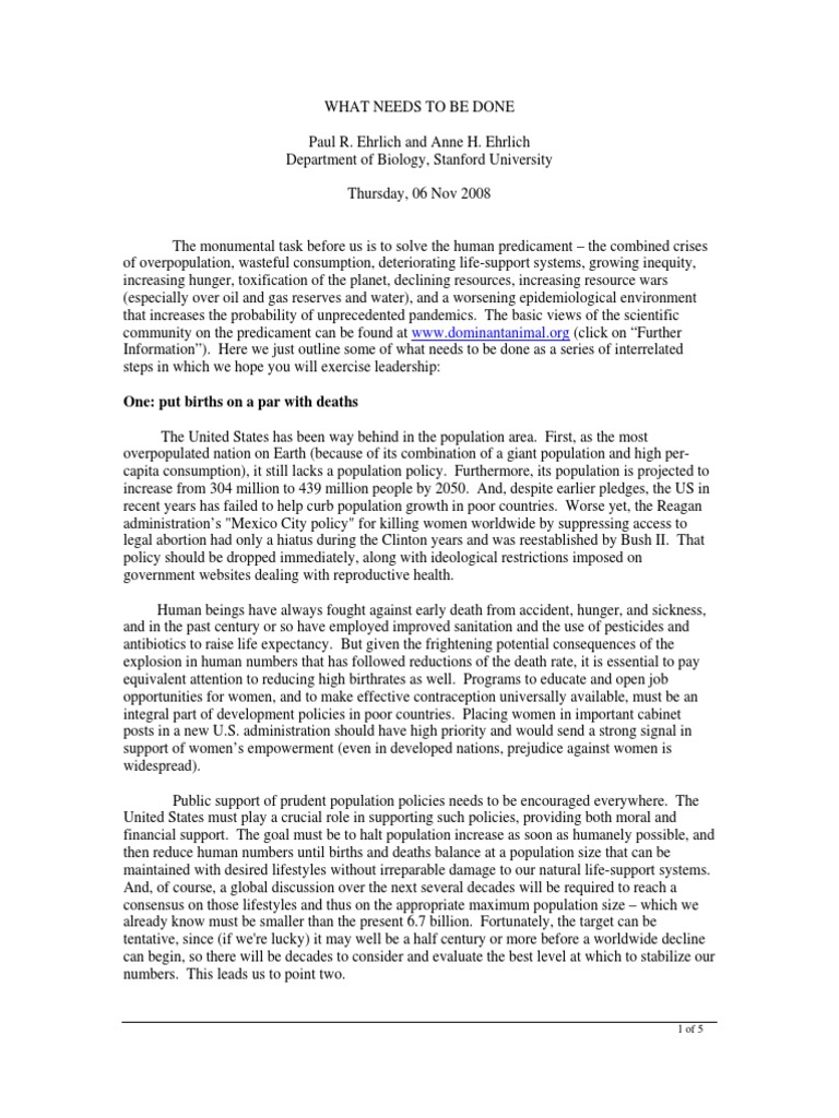 financial support. The goal must be to halt population increase as soon as humanely possible, and