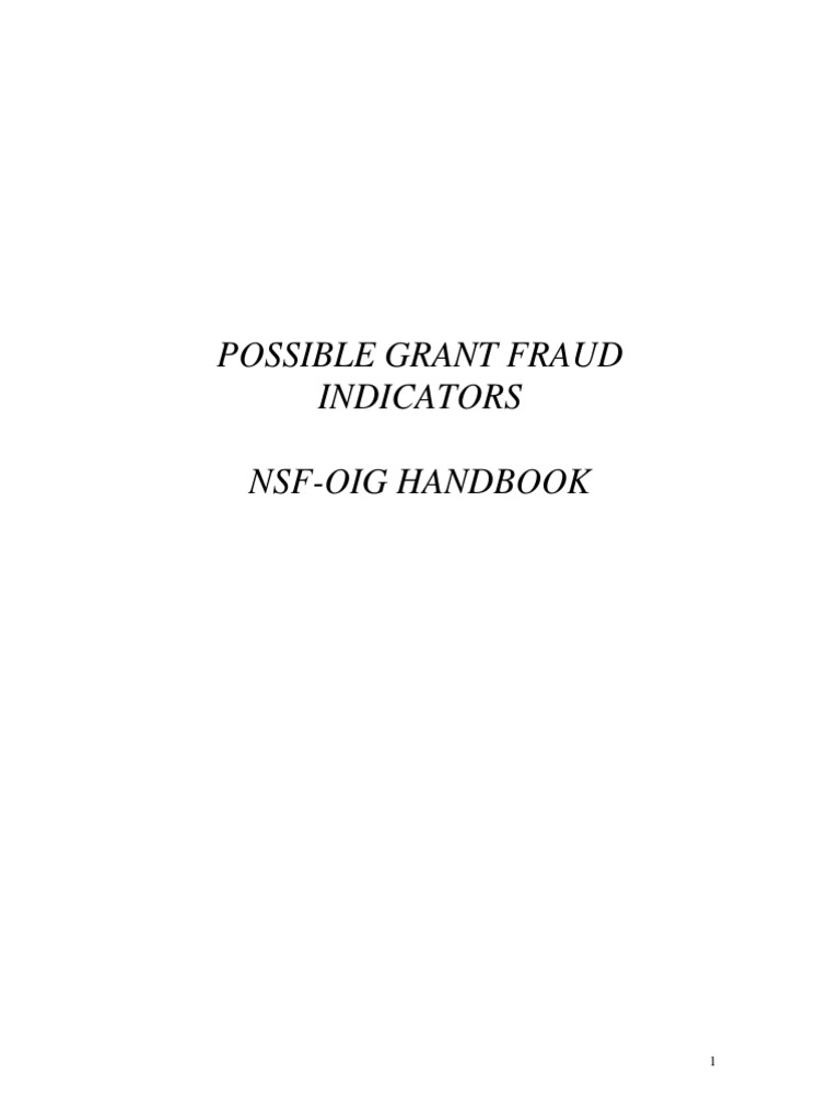POSSIBLE GRANT FRAUD INDICATORS NSF-OIG HANDBOOK
