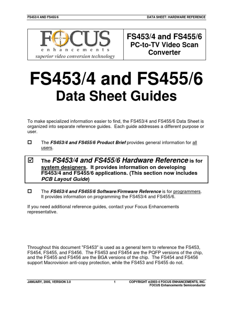 The Hardware Reference provides information needed to integrate the FS453 Video Processor into