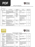 STUDENT PERFORMANCE OBJECTIVES: Without references or notes, within a limited time (3 hours total for each exam session), independently perform the following tasks. Multiple re-tries are allowed on mastery (100% accuracy) objectives, each with a dierent set of problems: Program and connect a PLC to control an electromagnetic relay with 100% accuracy (mastery) Sketch proper wire connections for sourcing or sinking PLC I/O points given schematic or pictorial diagrams of the components, with 100% accuracy (mastery) Determine status of a PLC discrete output given input states and a simple RLL program, with 100% accuracy (mastery) Calculate either the full-load current or the horsepower of an electric motor (either single- or threephase) given the line voltage and one of the other parameters Solve for specied variables in algebraic formulae, with 100% accuracy (mastery) Determine the possibility of suggested faults in a simple PLC circuit given measured values (voltage, current), a schematic diagram, and reported symptoms, with 100% accuracy (mastery) Program a PLC to fulll a specied control system function In a team environment and with full access to references, notes, and instructor assistance, perform the following tasks: Demonstrate proper use of safety equipment and application of safe procedures while using power tools, and working on live systems Communicate eectively with teammates to plan work, arrange for absences, and share responsibilities in completing all labwork Construct and commission a motor start/stop system using a PLC as the control element Generate an accurate wiring diagram compliant with industry standards documenting your teams motor control system Independently perform the following tasks on a functioning PLC motor control system with 100% accuracy (mastery). Multiple re-tries are allowed with dierent specications/conditions each time): Diagnose a random fault placed in another teams PLC motor control system by the instructor within a limited time using no test equipment except a multimeter and ladder logic editing software, logically justifying your steps in the instructors direct presence COURSE OUTLINE: A course calendar in electronic format (Excel spreadsheet) resides on the Y: network drive, and also in printed paper format in classroom DMC130, for convenient student access. This calendar is updated to reect schedule changes resulting from employer recruiting visits, interviews, and other impromptu events. Course worksheets provide comprehensive lists of all course assignments and activities, with the rst page outlining the schedule and sequencing of topics and assignment due dates. These worksheets are available in PDF format at http://openbookproject.net/books/socratic/sinst INST231 Section 1 (PLC contact, coil, and counter programming): 4 days theory and labwork INST231 Section 2 (PLC timer and sequence programming): 4 days theory and labwork + 1 day for mastery/proportional Exams