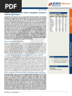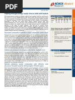 ICICI Securities Limited (ICICI Securities) and its affiliates are a full-service, integrated investment banking, investment management and brokerage and financing group. We along with affiliates are leading underwriter of securities and participate in virtually all securities trading markets in India. We and our affiliates have investment banking and other business relationship with a significant percentage of companies covered by our Investment Research Department. Our research professionals provide important input into our investment banking and other business selection processes. ICICI Securities generally prohibits its analysts, persons reporting to analysts and their dependent family members from maintaining a financial interest in the securities or derivatives of any companies that the analysts cover. The information and opinions in this report have been prepared by ICICI Securities and are subject to change without any notice. The report and information contained herein is strictly confidential and meant solely for the selected recipient and may not be altered in any way, transmitted to, copied or distributed, in part or in whole, to any other person or to the media or reproduced in any form, without prior written consent of ICICI Securities. While we would endeavour to update the information herein on reasonable basis, ICICI Securities, its subsidiaries and associated companies, their directors and employees (ICICI Securities and affiliates) are under no obligation to update or keep the information current. Also, there may be regulatory, compliance or other reasons that may prevent ICICI Securities from doing so. Non-rated securities indicate that rating on a particular security has been suspended temporarily and such suspension is in compliance with applicable regulations and/or ICICI Securities policies, in circumstances where ICICI Securities is acting in an advisory capacity to this company, or in certain other circumstances. This report is based on information obtained from public sources and sources believed to be reliable, but no independent verification has been made nor is its accuracy or completeness guaranteed. This report and information herein is solely for informational purpose and may not be used or considered as an offer document or solicitation of offer to buy or sell or subscribe for securities or other financial instruments. Though disseminated to all the customers simultaneously, not all customers may receive this report at the same time. ICICI Securities will not treat recipients as customers by virtue of their receiving this report. Nothing in this report constitutes investment, legal, accounting and tax advice or a representation that any investment or strategy is suitable or appropriate to your specific circumstances. The securities discussed and opinions expressed in this report may not be suitable for all investors, who must make their own investment decisions, based on their own investment objectives, financial positions and needs of specific recipient. This may not be taken in substitution for the exercise of independent judgment by any recipient. The recipient should independently evaluate the investment risks. The value and return of investment may vary because of changes in interest rates, foreign exchange rates or any other reason. ICICI Securities and affiliates accept no liabilities for any loss or damage of any kind arising out of the use of this report. Past performance is not necessarily a guide to future performance. Investors are advised to see Risk Disclosure Document to understand the risks associated before investing in the securities markets. Actual results may differ materially from those set forth in projections. Forward-looking statements are not predictions and may be subject to change without notice. ICICI Securities and its affiliates might have managed or co-managed a public offering for the subject company in the preceding twelve months. It is confirmed that Rashesh Shah CA, Darpan Thakkar MBA research analysts and the authors of this report have not received any compensation from the companies mentioned in the report in the preceding twelve months. Our research professionals are paid in part based on the profitability of ICICI Securities, which include earnings from Investment Banking and other business. ICICI Securities or its subsidiaries collectively do not own 1% or more of the equity securities of the Company mentioned in the report as of the last day of the month preceding the publication of the research report. It is confirmed that Rashesh Shah CA,Darpan Thakkar MBA research analysts and the authors of this report or any of their family members does not serve as an officer, director or advisory board member of the companies mentioned in the report. ICICI Securities may have issued other reports that are inconsistent with and reach different conclusion from the information presented in this report. ICICI Securities and affiliates may act upon or make use of information contained in the report prior to the publication thereof. This report is not directed or intended for distribution to, or use by, any person or entity who is a citizen or resident of or located in any locality, state, country or other jurisdiction, where such distribution, publication, availability or use would be contrary to law, regulation or which would subject ICICI Securities and affiliates to any registration or licensing requirement within such jurisdiction. The securities described herein may or may not be eligible for sale in all jurisdictions or to certain category of investors. Persons in whose possession this document may come are required to inform themselves of and to observe such restriction.