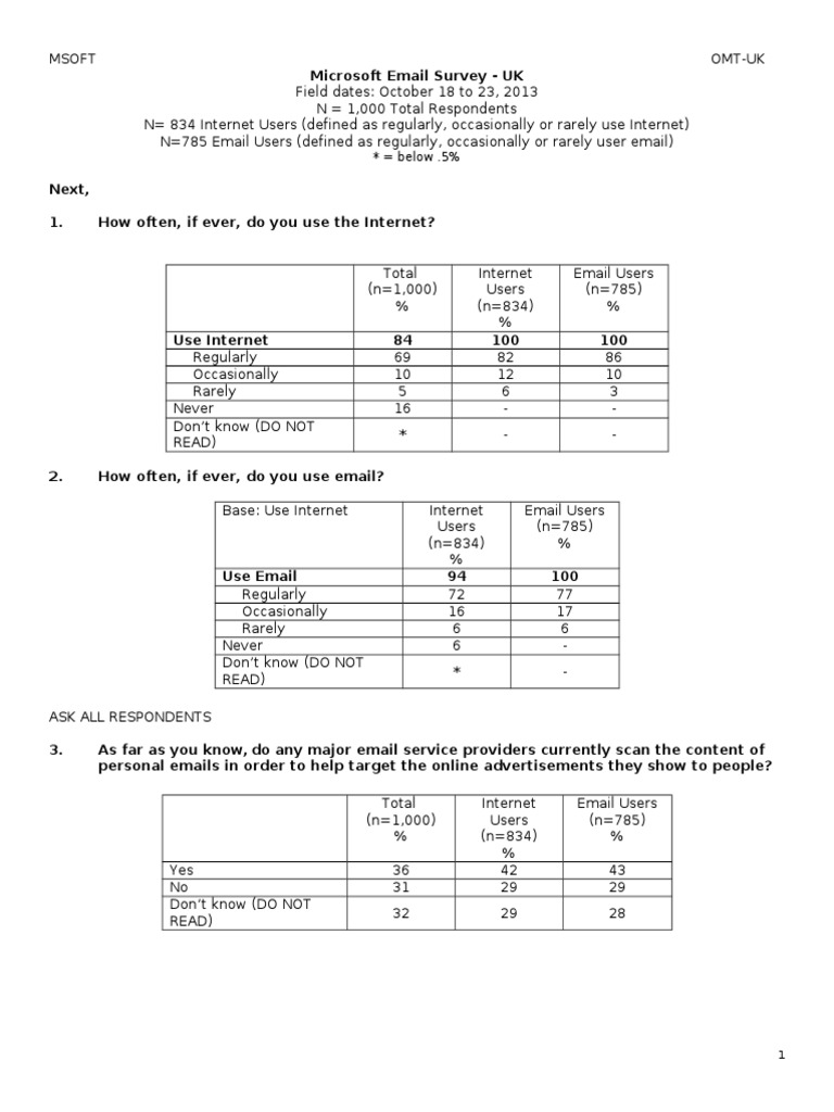 GfK Roper Poll: Majority of UK Public Strongly Disapprove of the Practice of Scanning Emails to Target Online Advertisements