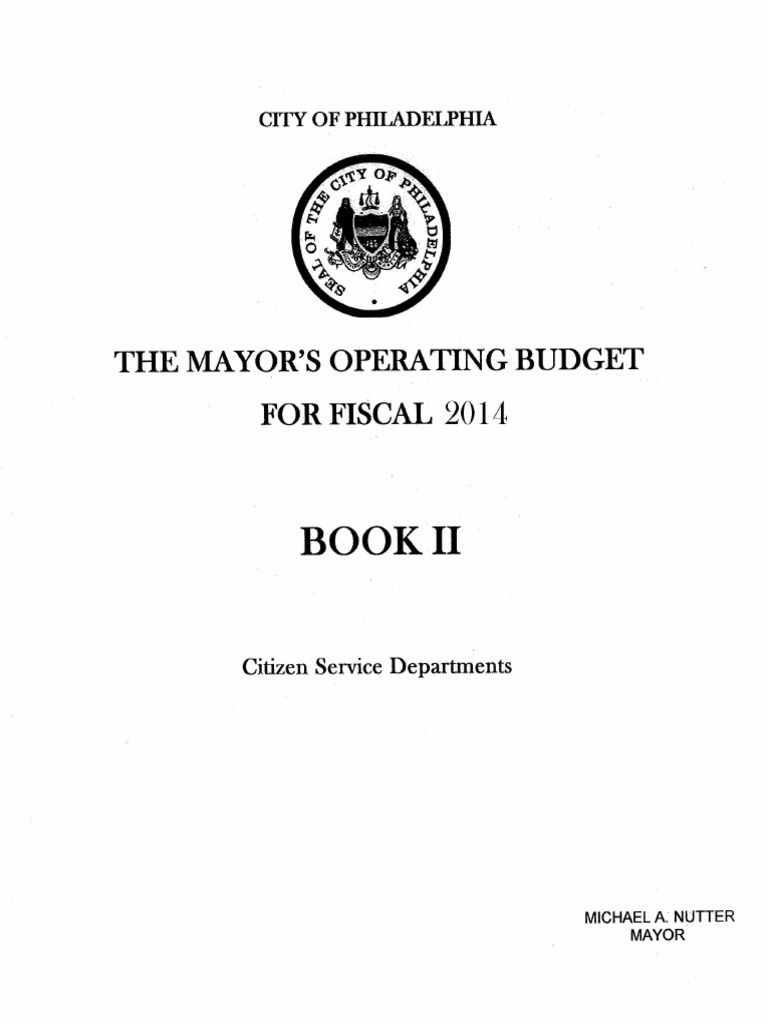 Philadelphia Mayor's Proposed CITY OF PHILADELPHIA FISCAL 2014 OPERATING BUDGET