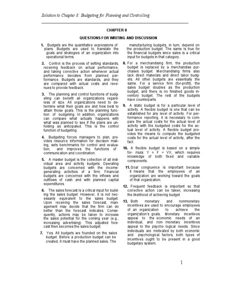Solution to Chapter 8: Budgeting for Planning and Controlling