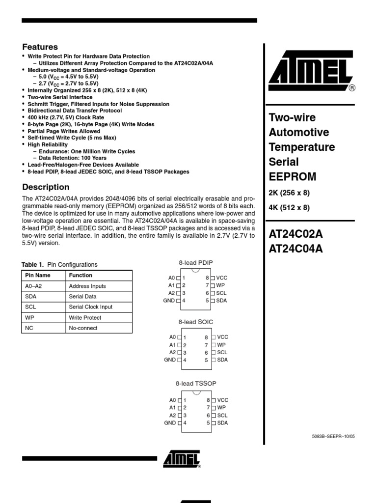WRITE PROTECT (WP): The AT24C02A/04A have a WP pin that provides hardware
